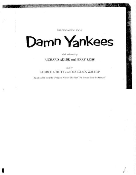 Download Damn Yankees Libretto Ebook PDF By Click Button. Damn Yankees Libretto Ebook it’s easy to recommend a new book category such as Novel, journal, comic, magazin, ect. You see it and you just know that the designer is also an author and understands the challenges involved with having a good book. You can easy klick for detailing book and you can read it online, even you can download it